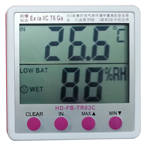 ●HD-FBME-TR03C、HD-FBME-TR03C-232、HD-FBME-TR03C-485系列本安型防爆工業(yè)溫濕度記錄儀和本安型防爆工業(yè)溫濕度變送器,防爆等級:Ex iaⅡC T5-T6 Ga;防爆證書:(正在認(rèn)證過程中),上述三種產(chǎn)品獲實用新型專利號:CN 222231728 U 和發(fā)明專利號:CN 117723113 A保護(hù)。